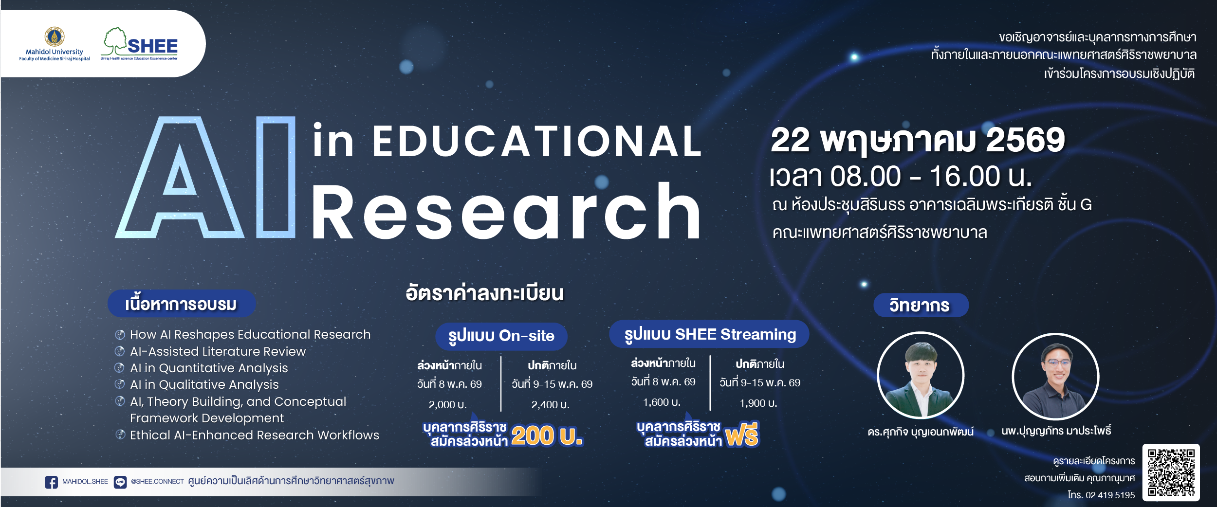 If you encounter challenges and need consultation regarding teaching, assessment and evaluation, educational research, project proposal writing, or the development of systems to support operations in your unit, whether you are a doctor, nurse, or staff member, we are ready to provide advice and support. Join us for consultation and assistance.