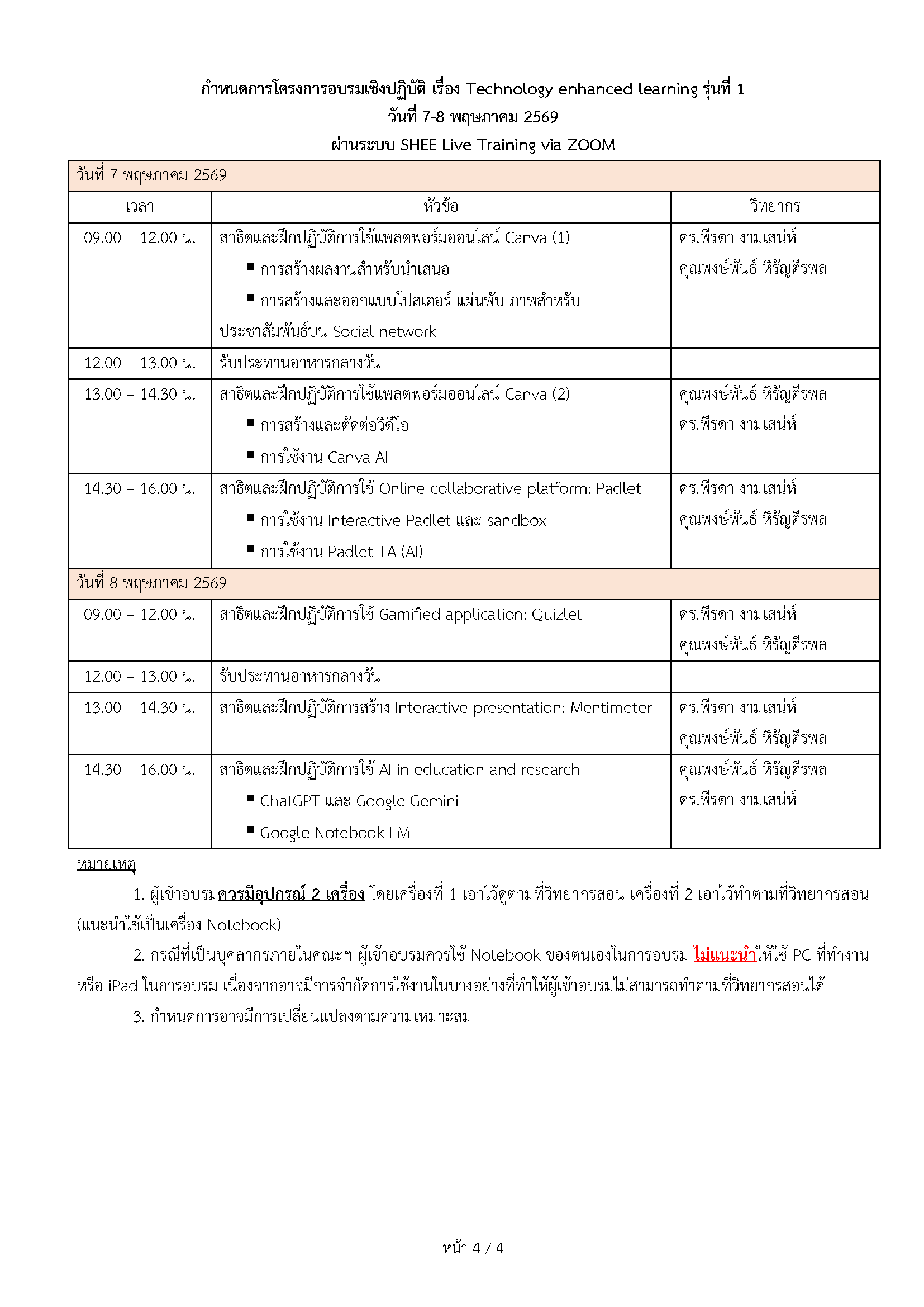 เป็นการฝึกปฏิบัติควบคุมโดยวิทยากรผู้ทรงคุณวุฒิ เกี่ยวกับการใช้งานแอพลิเคชั่นต่างๆ ในการจัดการเรียนการสอน โดยการจัดกิจกรรมให้ผู้เข้าอบรมได้ลงมือปฏิบัติ