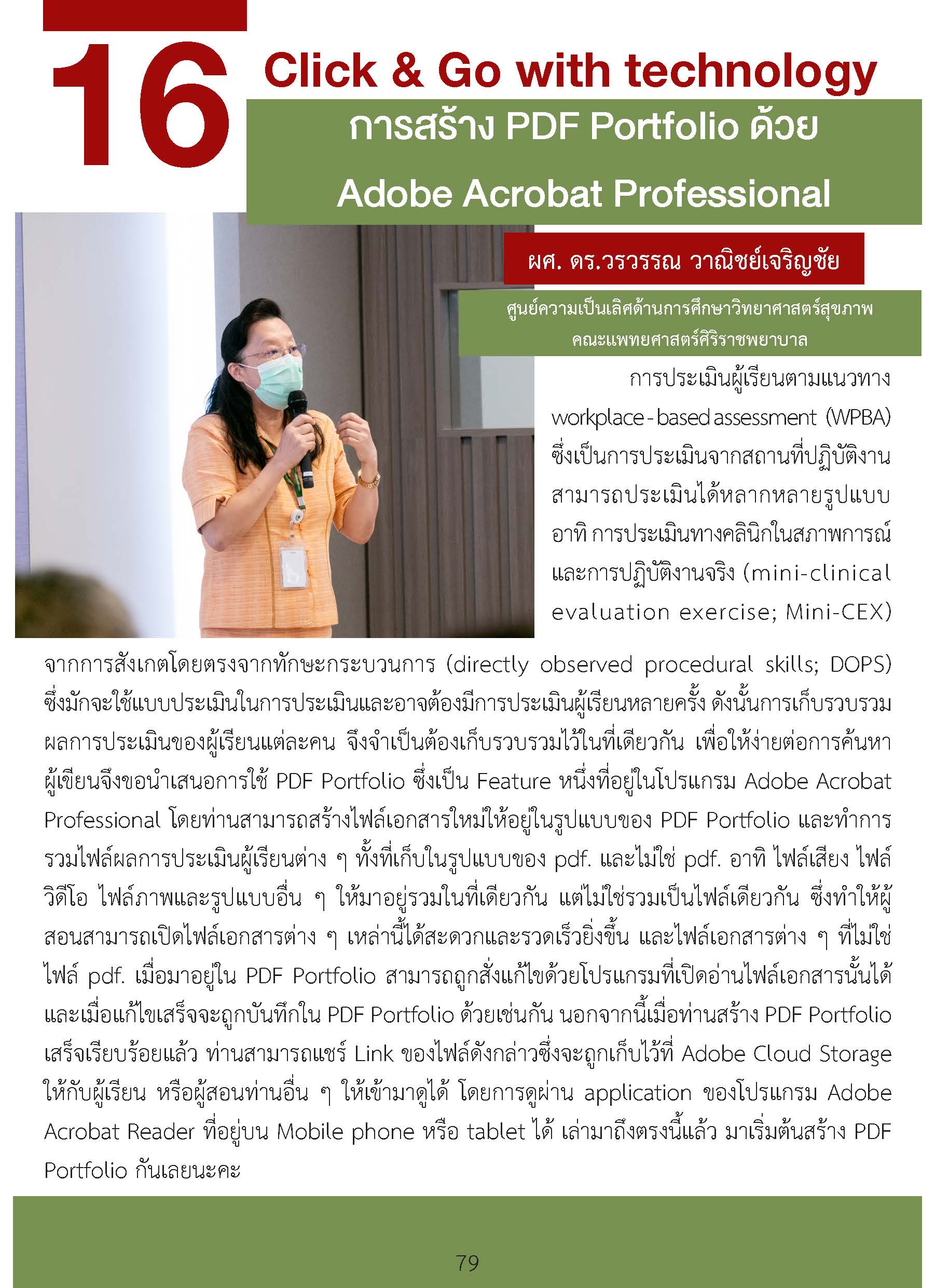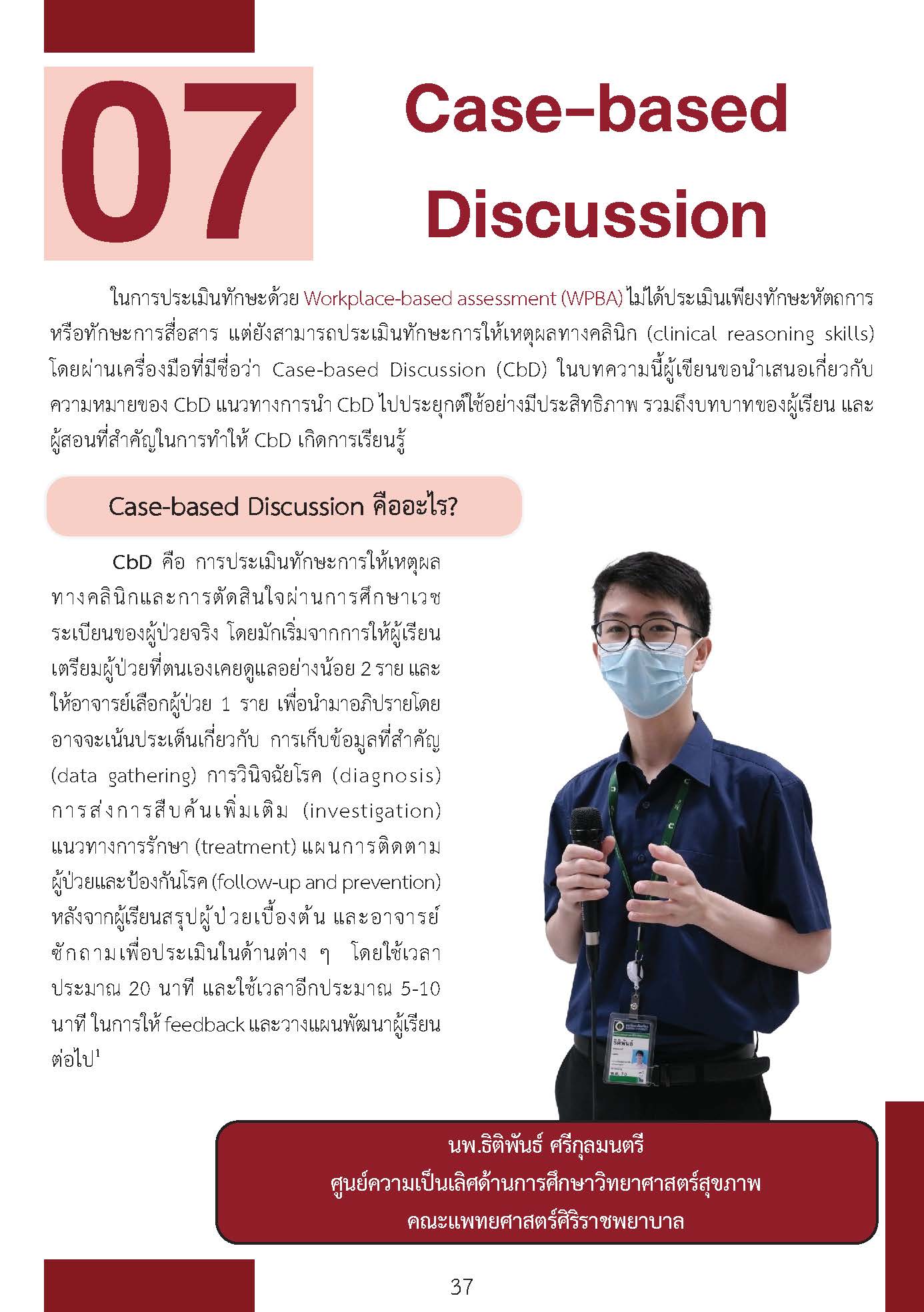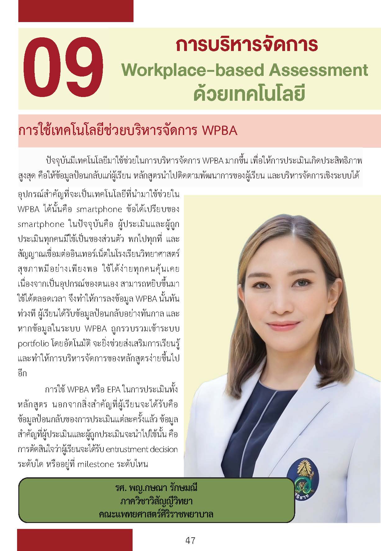 Workplace-based assessment เป็นเครื่องมือประเมินผลที่มีความสำคัญอย่างมากโดยเฉพาะนักเรียนวิทยาศาสตร์สุขภาพชั้นคลินิก ที่จะต้องพัฒนาตนเองให้สามารถดูแลผู้ป่วยได้ในสถานการณ์จริง แม้ว่าจะมีการใช้ในประเทศไทยเป็นเวลานานและในหลากหลักสูตร ในปัจจุบันยังพบปัญหาความเข้าใจที่ไม่ถูกต้องนำไปสู่ภาระที่มากเกินความจำเป็นสำหรับอาจารย์ และประโยชน์ต่อการเรียนรู้ของผู้เรียนที่ไม่ดีเท่าไหร่ หากมีความเข้าใจเครื่องมือเหล่านี้ได้ดียิ่งขึ้น เชื่อว่าจะเป็นประโยชน์ต่อหลักสูตรฝึกอบรม อาจารย์ในหลักสูตร ผู้เรียนทุกคน รวมไปถึงผู้ป่วยในอนาคตที่ผู้เรียนจะได้ดูแลรักษาต่อไป