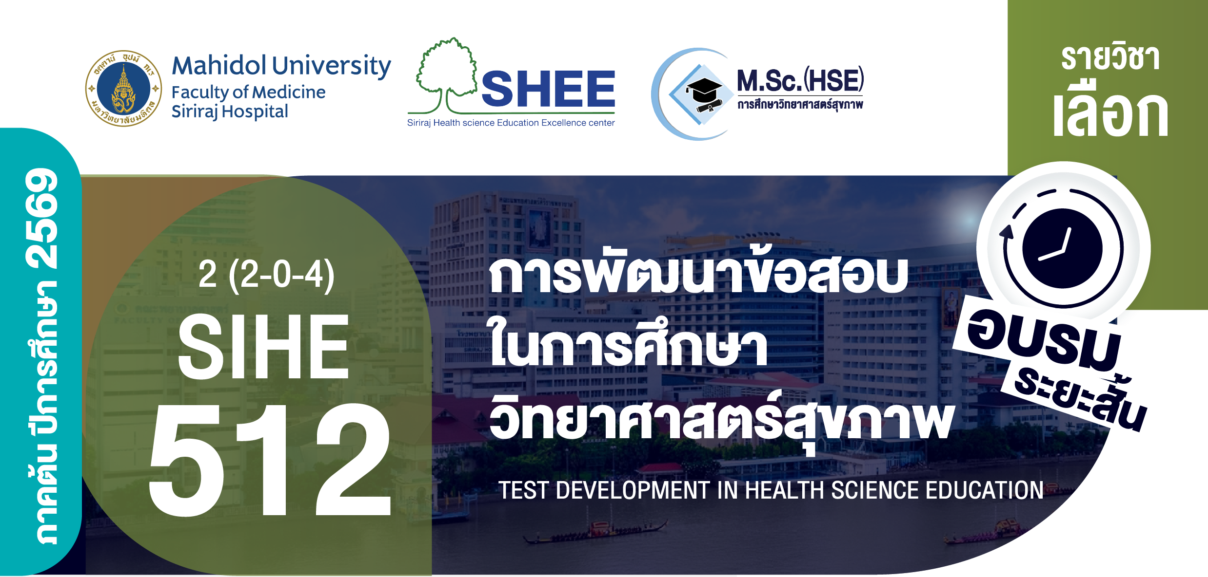 รับสมัครเข้าศึกษาหลักสูตรอบรมระยะสั้น (Short Course) เรื่อง การพัฒนาข้อสอบในการศึกษาวิทยาศาสตร์สุขภาพ (SIHE 512)