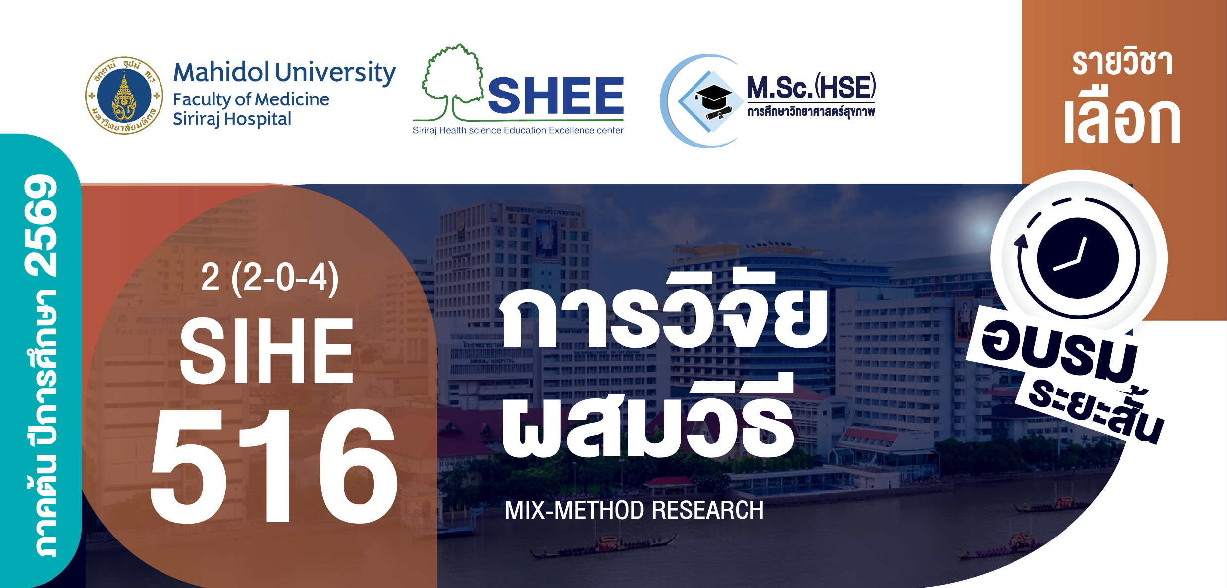 รับสมัครเข้าศึกษาหลักสูตรอบรมระยะสั้น (Short Course) เรื่อง การวิจัยผสมวิธี (SIHE 516)
