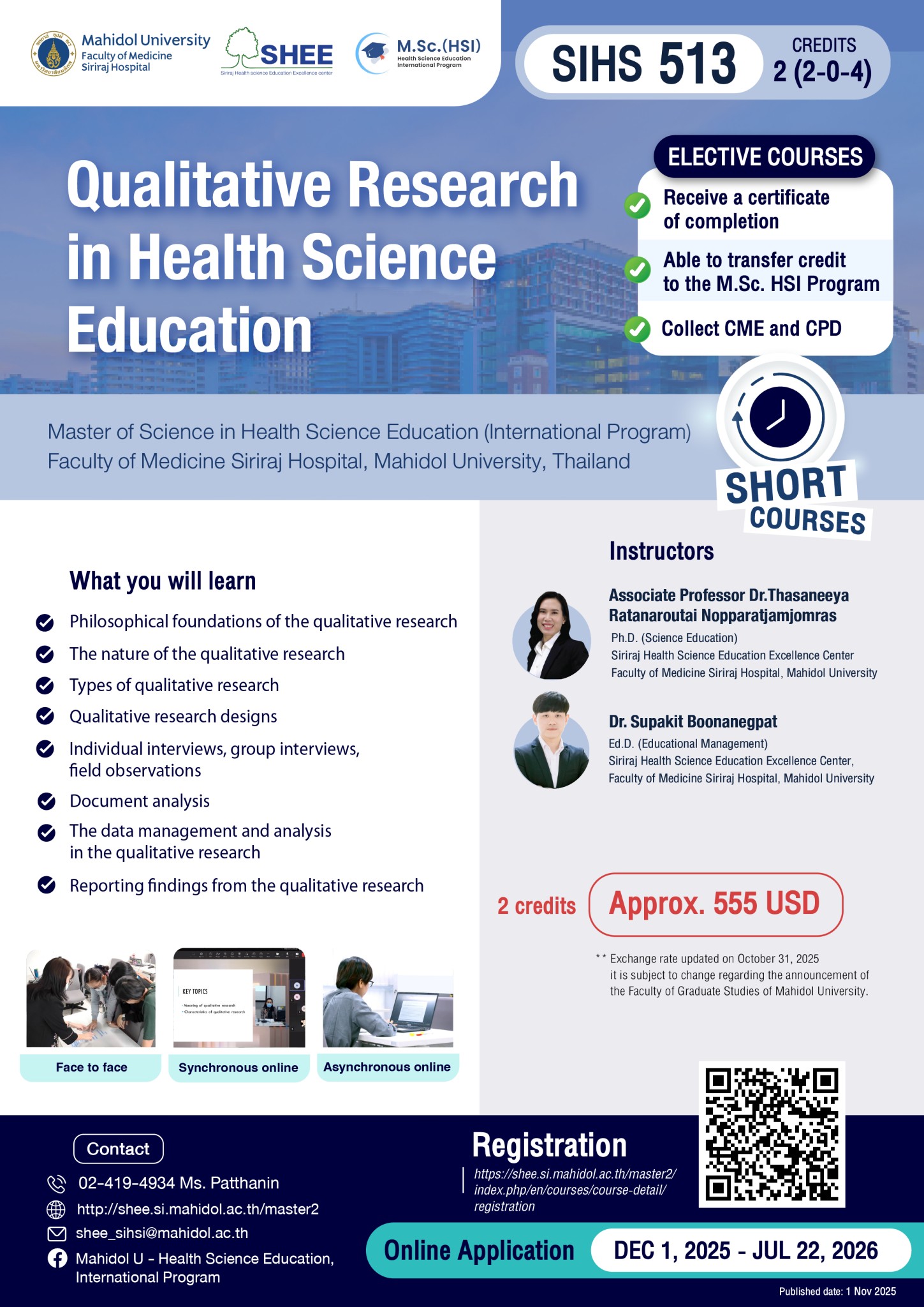 SIHS 513 Qualitative Research in Health Science Education2 credits