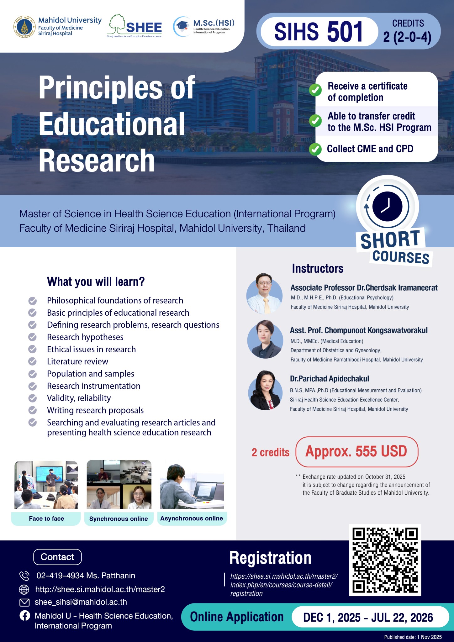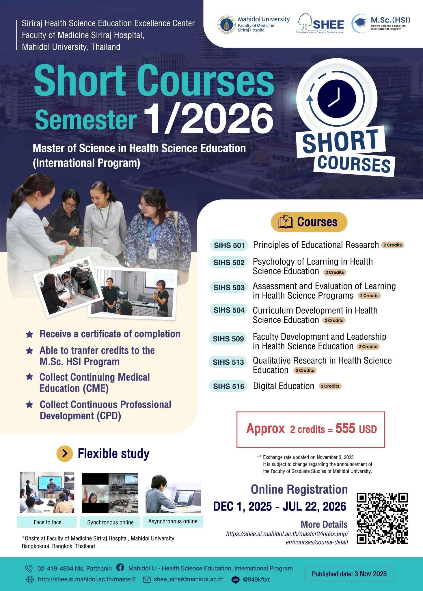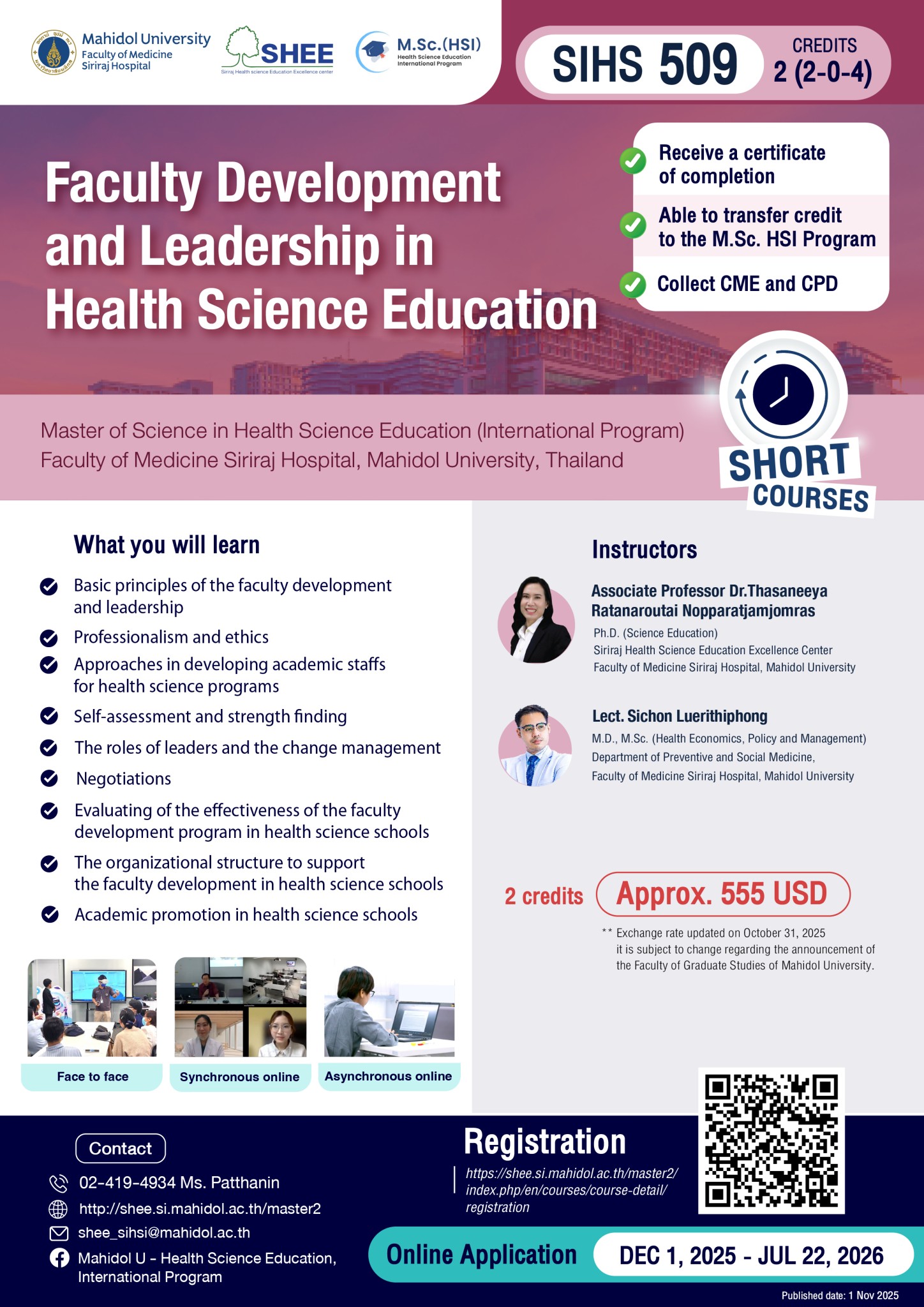 SIHS 509 Faculty Development and Leadership in Health Science Education2 credits