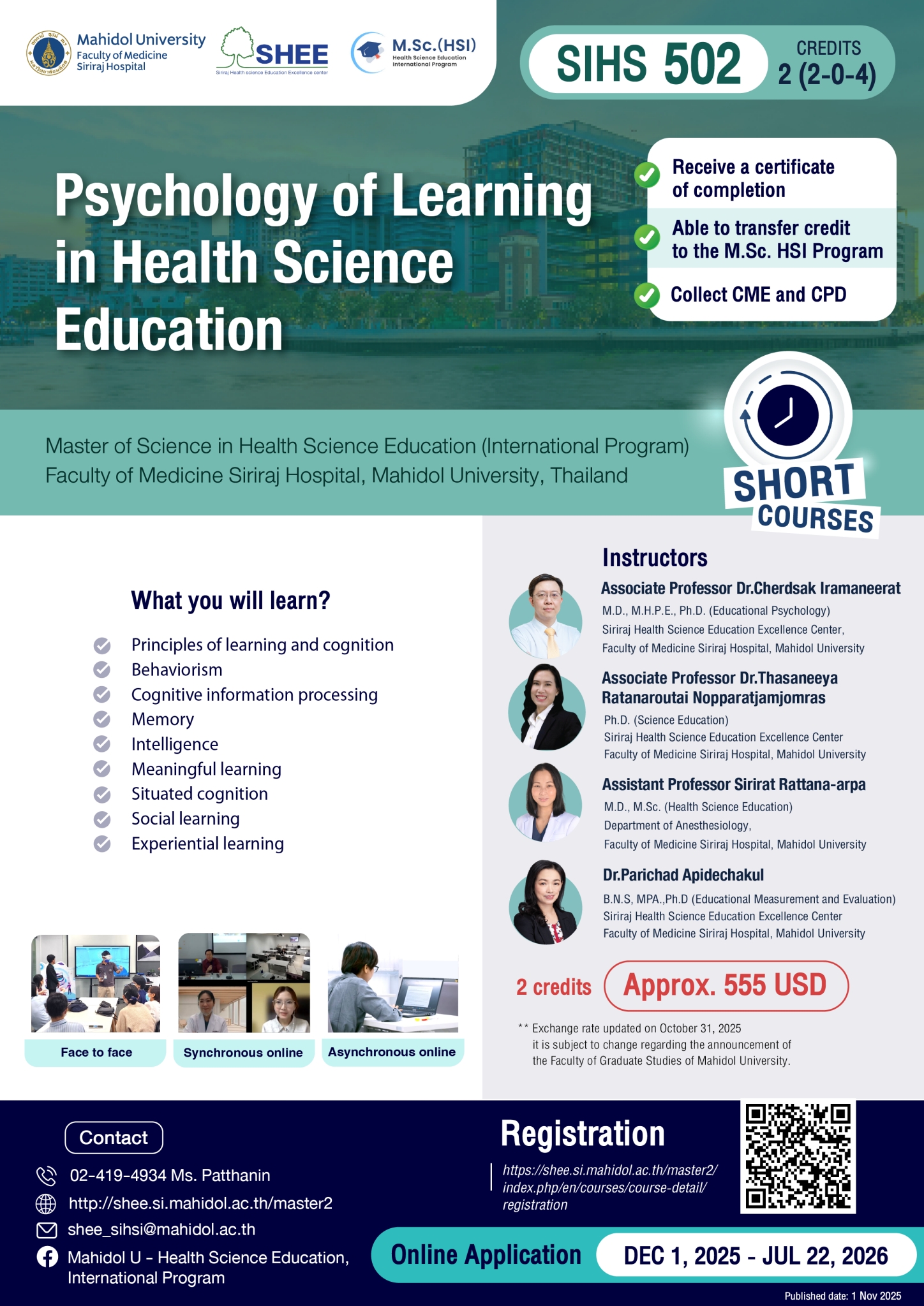 SIHS 502 Psychology of Learning in Health Science Education2 credits