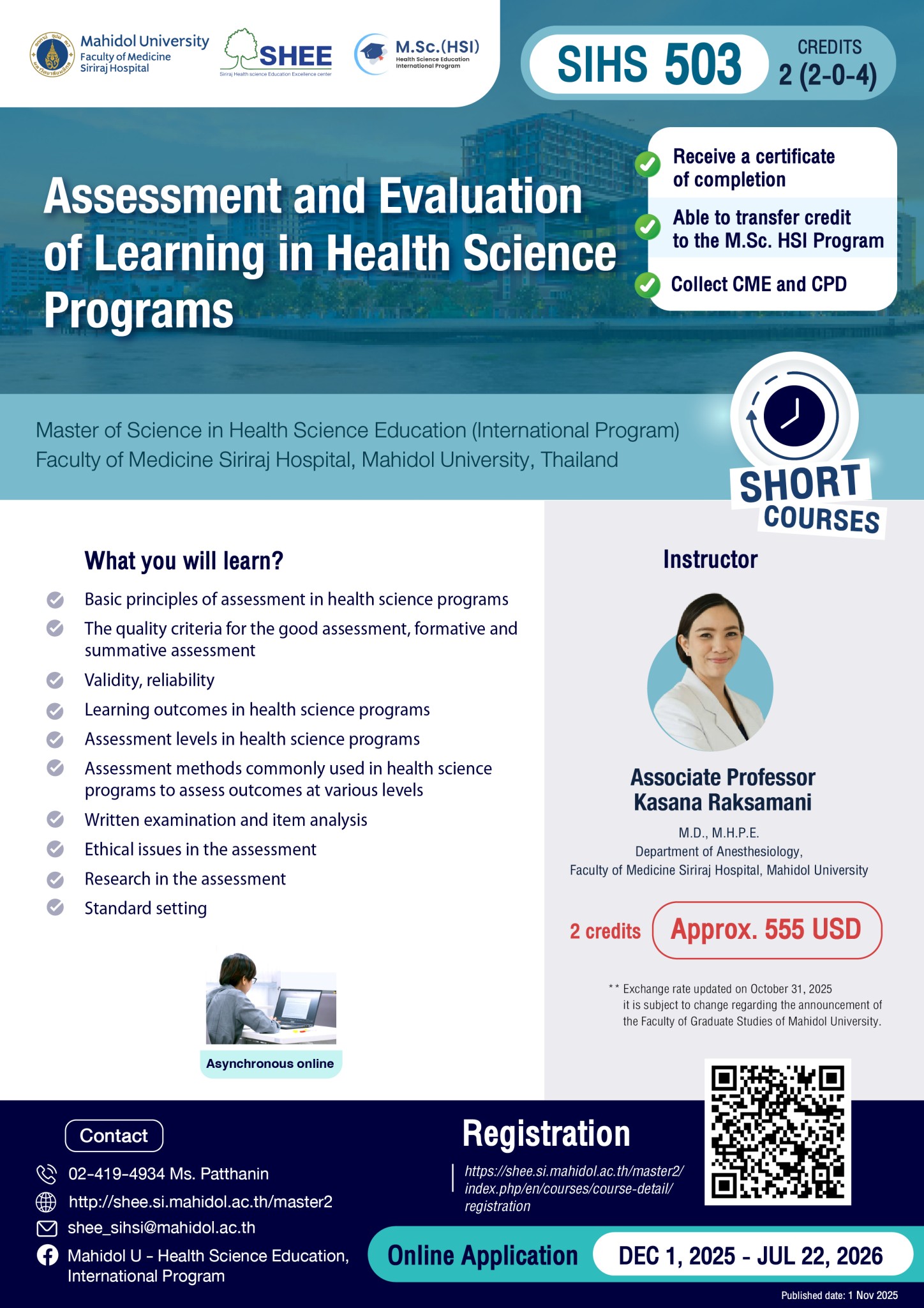SIHS 503 Assessment and Evaluation of Learning in Health Science Programs2 credits