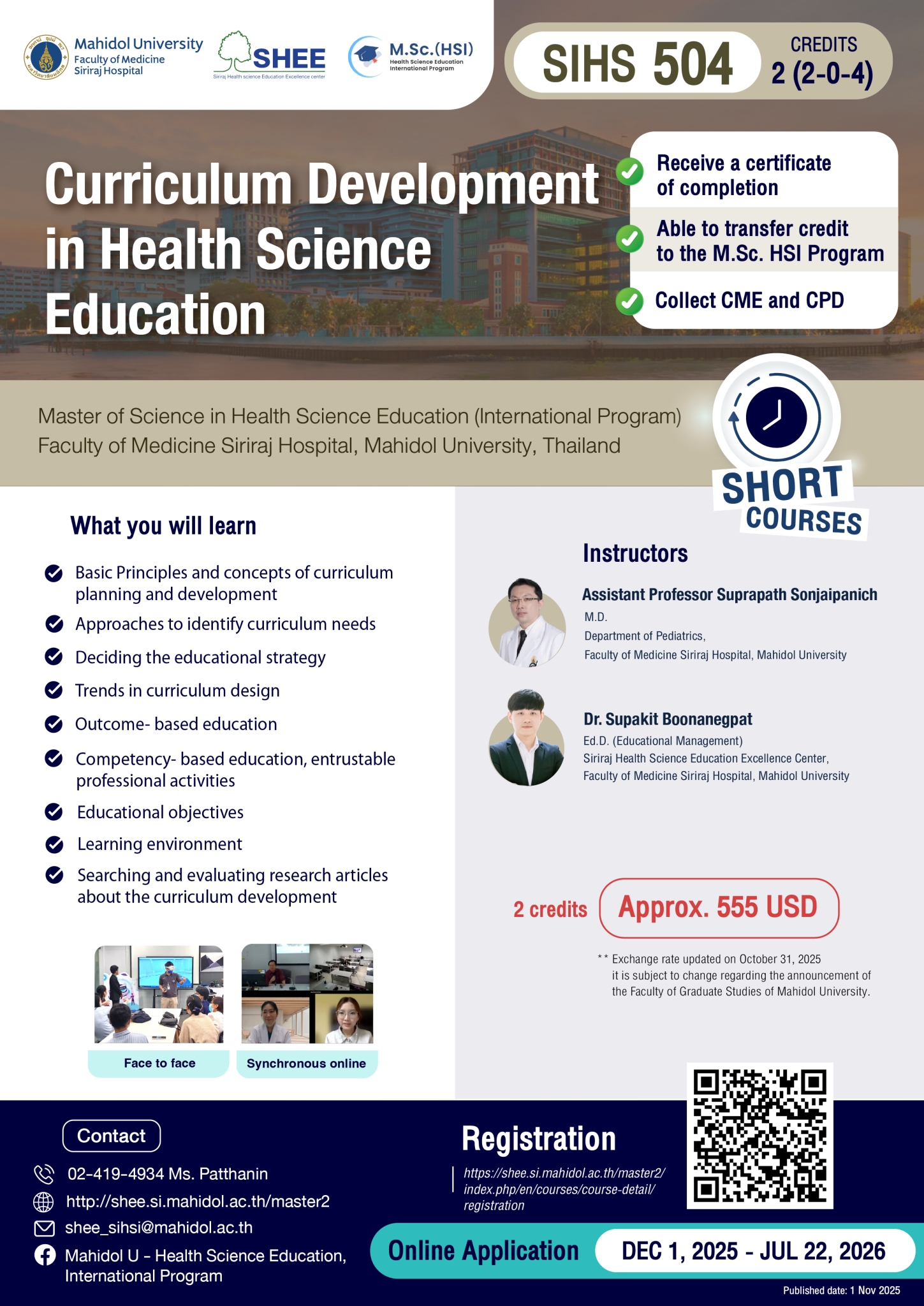 SIHS 504 Curriculum Development in Health Science Education2 credits