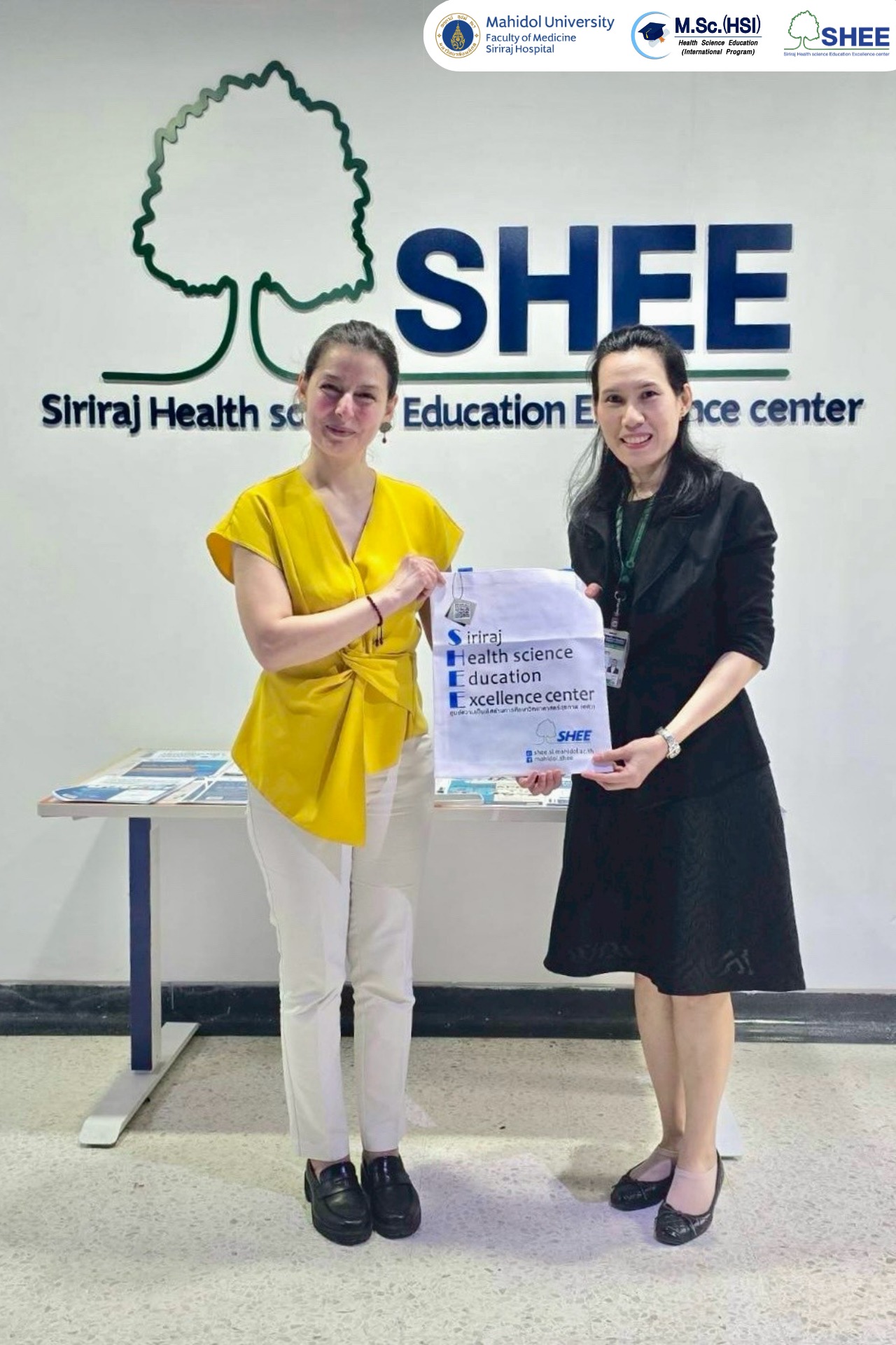 Dr. Farahnaz Sadidi from the Faculty of Physics, TU Dresden (Dresden University of Technology), Germany, met with Associate Professor Dr. Thasaneeya Ratanaroutai Nopparatjamjomras, Program Director of the Master of Science in Health Science Education (International Program). The meeting focused on planning collaborative research initiatives and strengthening cooperation in the development of future students and faculty members. In addition, Dr. Farahnaz Sadidi generously shared her expertise with our students, Ms. Shwe Nadi Htan and Mr. Duong Gia Lang, through a session entitled “STEAM-CT: Transforming STEAM Education with Integrated Critical Thinking.”